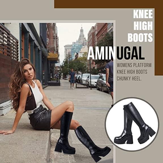 AMINUGAL Black Knee High Boots Womens(D-black)