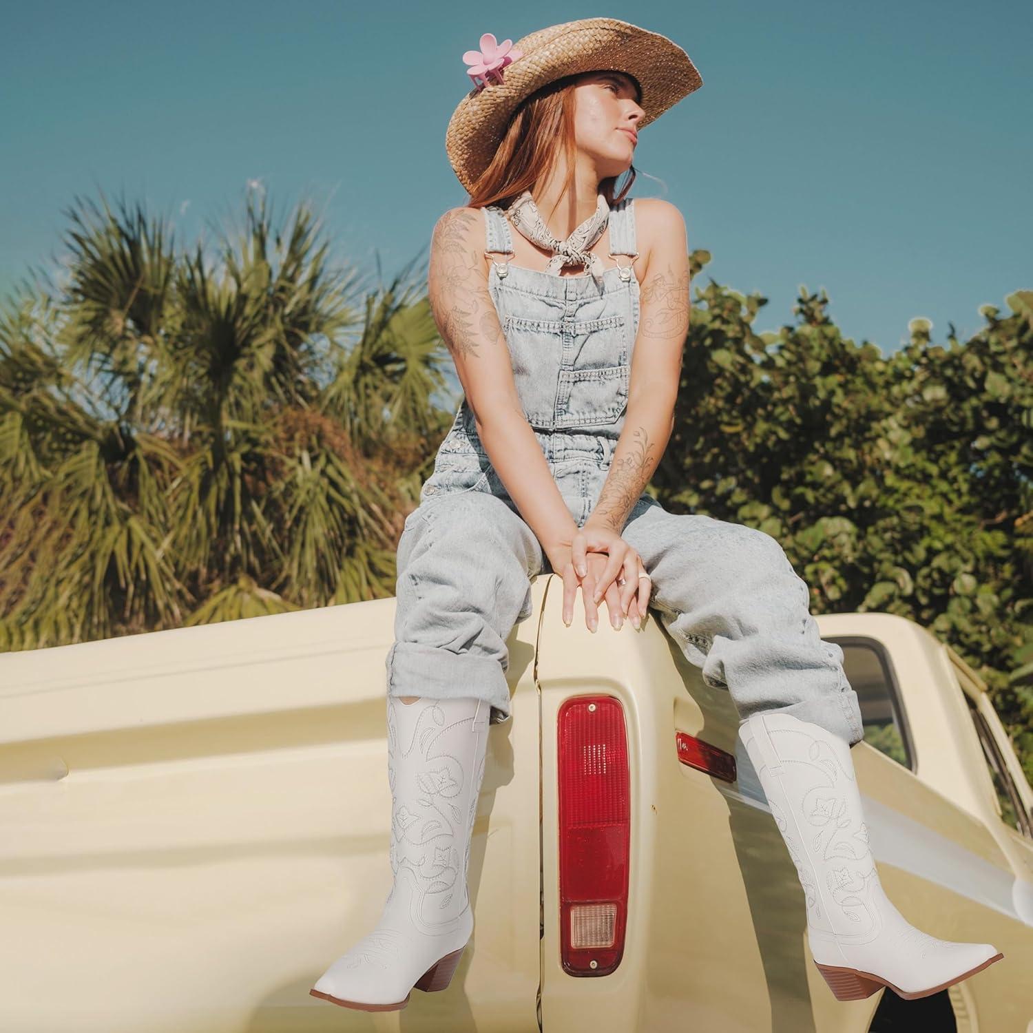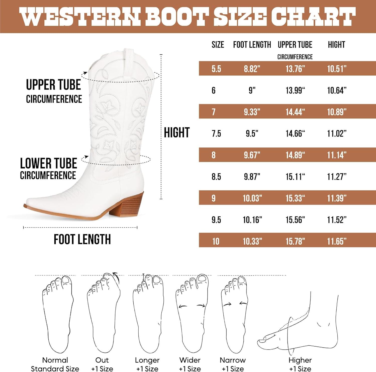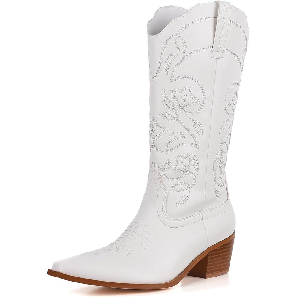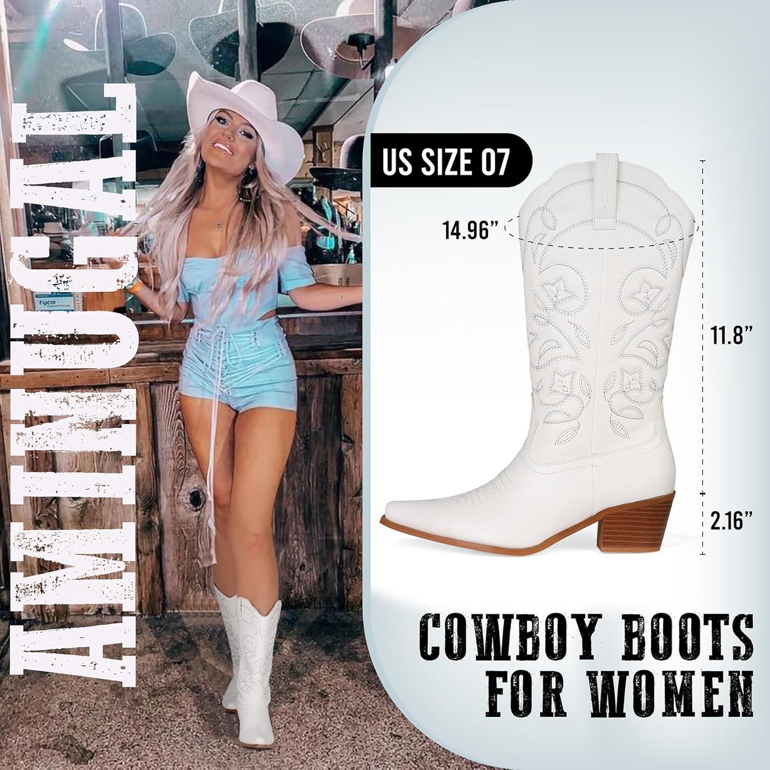 Get up to 60% off on AMINUGAL Cowboy Boots for Women Mid Calf Cowgirl Boots Pointed Toe Chunky Heel Embroidered Western Boots Women Pull On Fashion Retro Classic Ankle Boots(I-white) styles during our winter sale event.