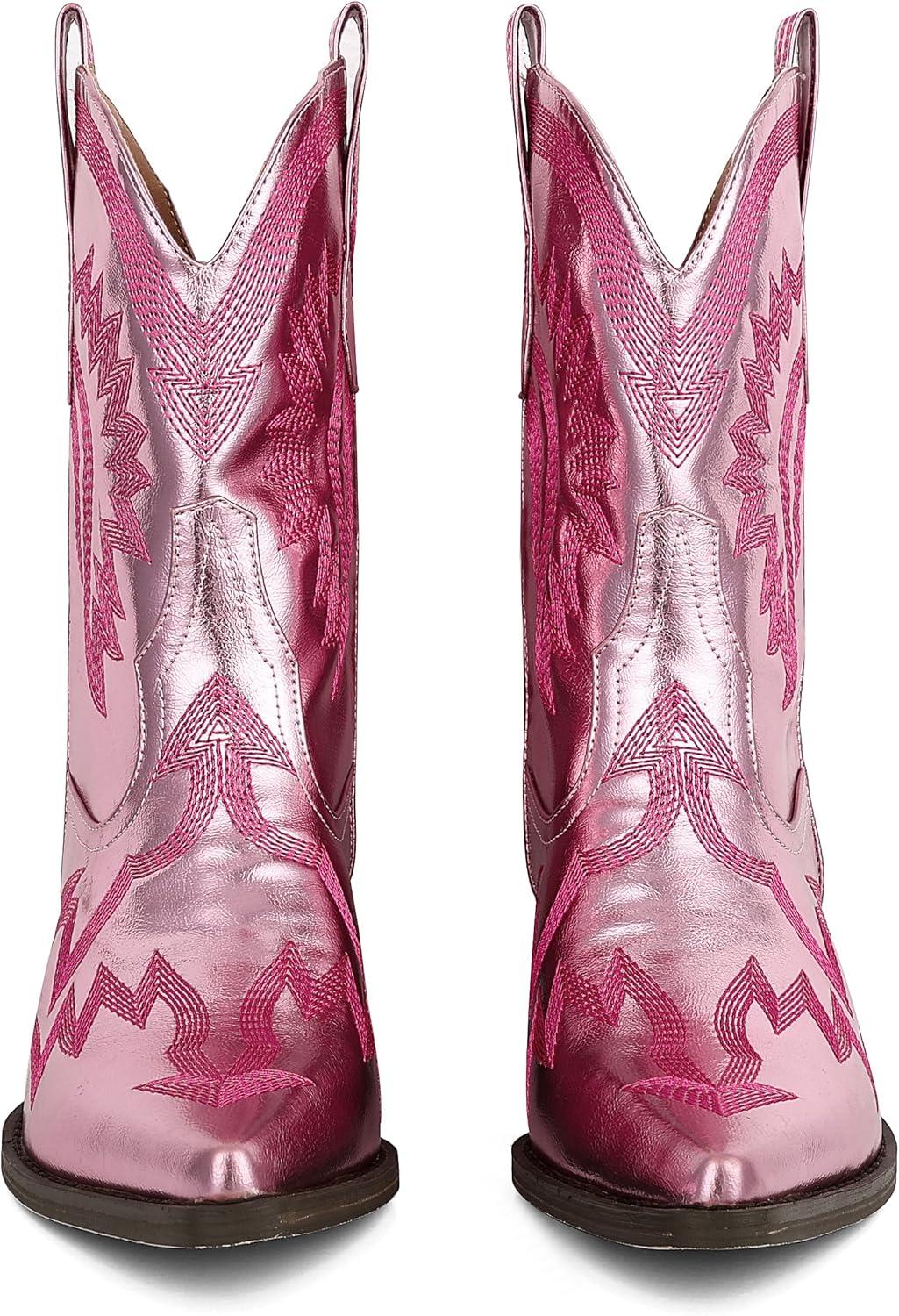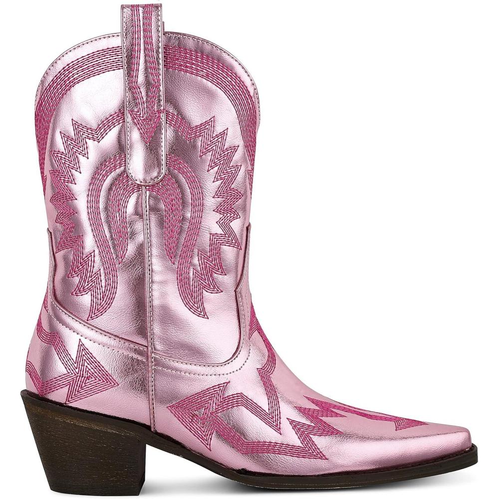 Our holiday sale features the best deals on AMINUGAL Cowgirl Boots Chunky Heel Cowboy Boots for Women Pointed Toe Pull On Western Boots Women’s Ankle Boots Country Concert Fashion Retro Metallic Booties(A-pink) and accessories. Shop now and save!
