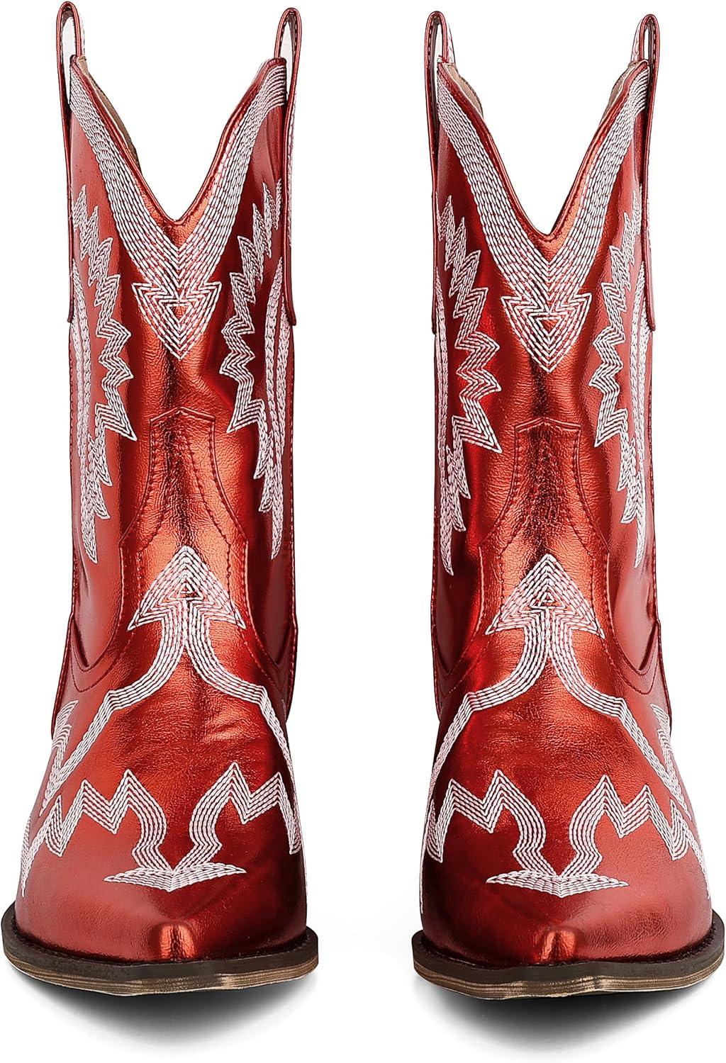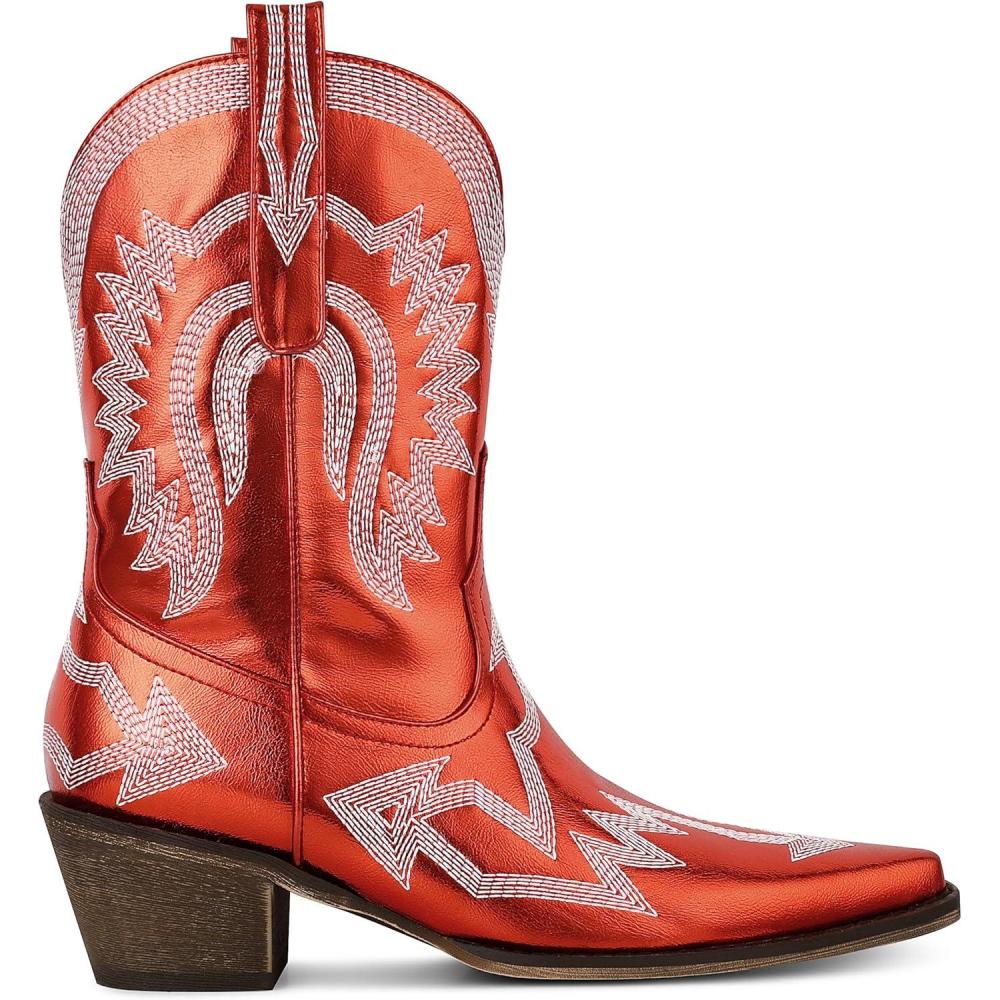 Get more for your money with our exclusive bundle deals on AMINUGAL Cowgirl Boots Chunky Heel Cowboy Boots for Women Pointed Toe Pull On Western Boots Women’s Ankle Boots Country Concert Fashion Retro Metallic Booties(A-red) and accessories.