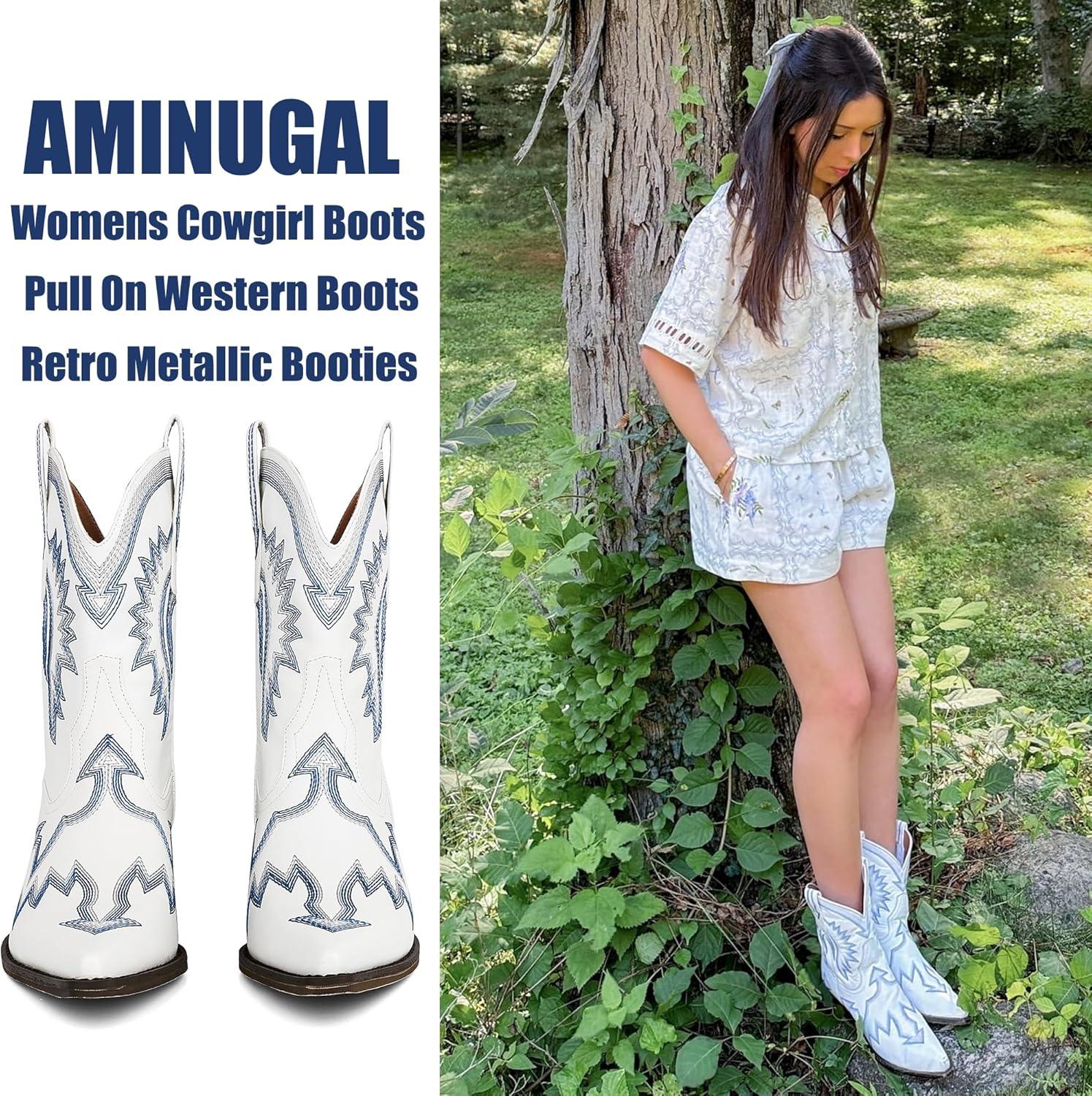 Be the first to review “AMINUGAL Cowgirl Boots Chunky Heel Cowboy Boots for Women Pointed Toe Pull On Western Boots Women’s Ankle Boots Country Concert Fashion Retro Metallic Booties(A-white)”