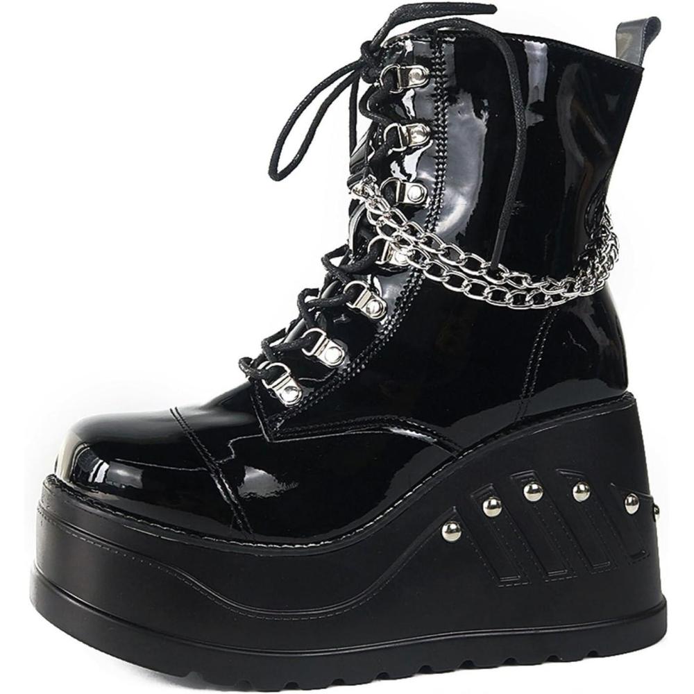 Be the first to review “AMINUGAL Platform Goth Boots for Women Lace up Wedges Chain Ankle Booties Studded Short Motorcycle Boots Ridding Shopping Concert Booties(Black Patent Leather)” Cancel reply
