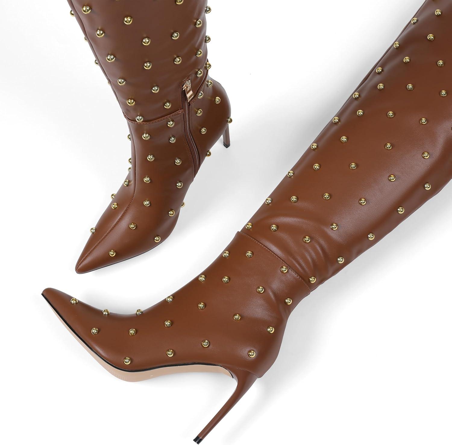 AMINUGAL Thigh High Boots for Women Wide Calf Pointed Toe Over The Knee Boots for Women Zipper Vintage Fashion Thigh Stiletto High Heel Boots Sexy Trendy Concert Club Y2K Going Out Shoes(Black)
