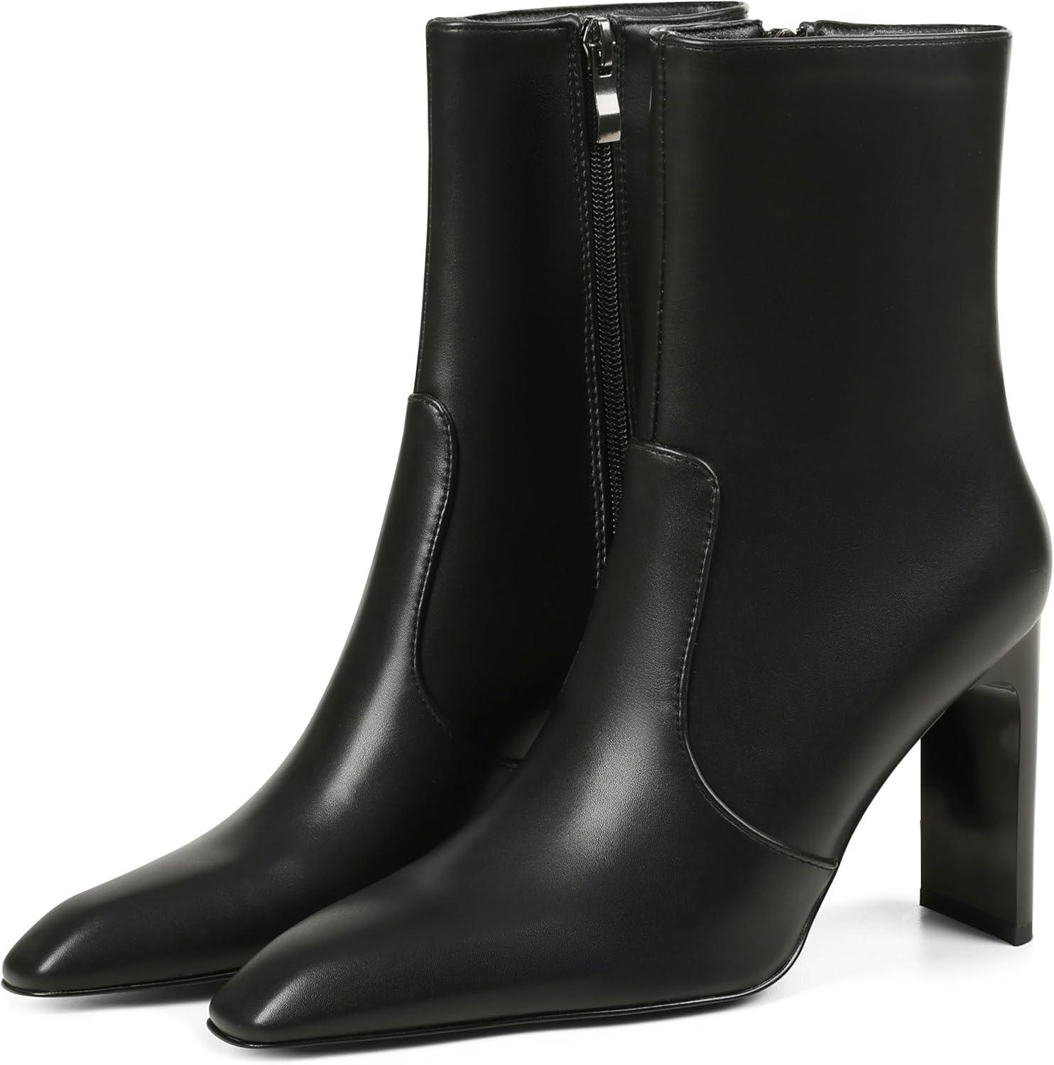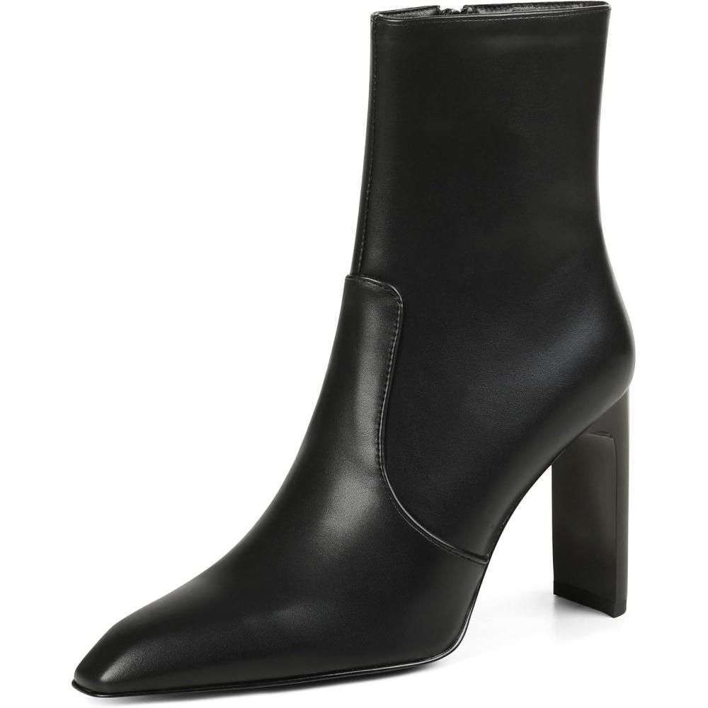 AMINUGAL Womens Ankle Boots Chunky Block High Heel Shiny Short Boot Pointed Toe With Side Zipper Mid Calf Goth Boot Heeled Booties(Blackpu)