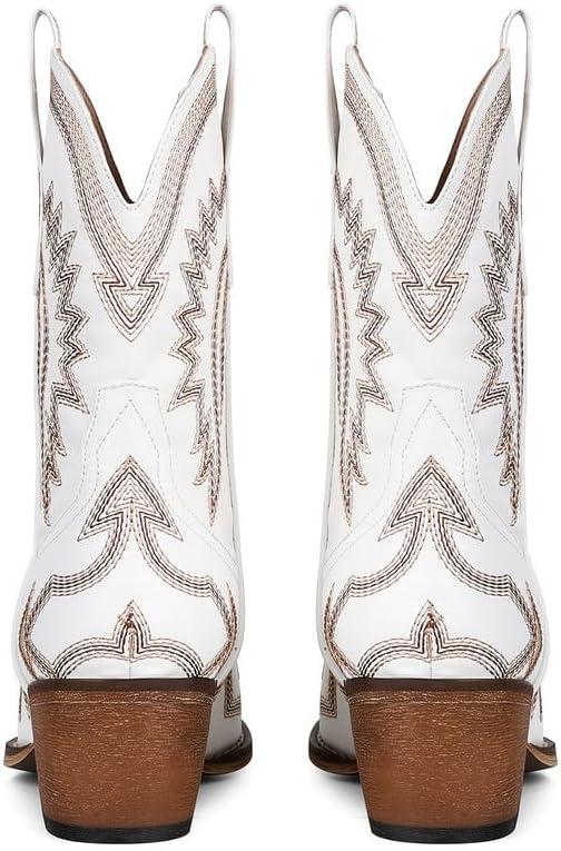 Save big on AMINUGAL Womens Ankle Boots Cowboy Boot Embroidered Pointed Toe Metallic Pull On Chunky Block Heel Riding Western Cowgirl Booties Shoes(White) during our summer blowout sale. Limited quantities available.