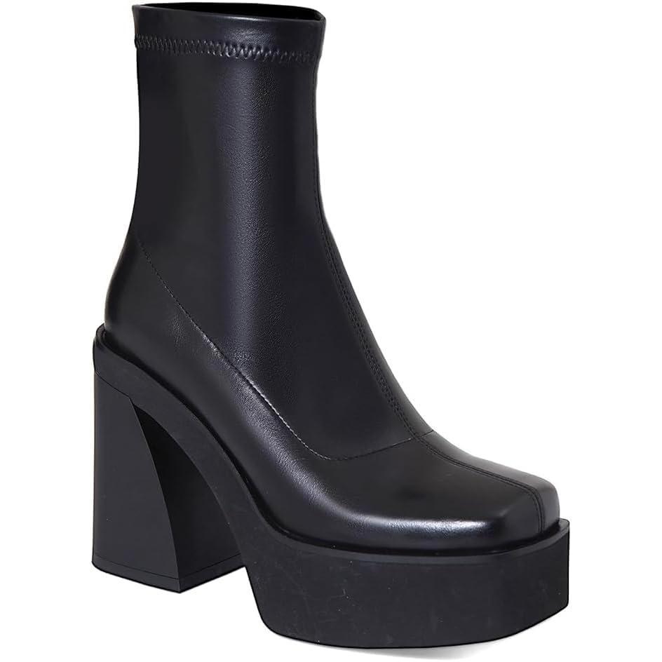 AMINUGAL Womens Ankle Boots Pull on Stretch Platform Boots Squared Toe Chunky High Heel Combat Boots Gothic Shoes Concert Party Wear Booties(Black)