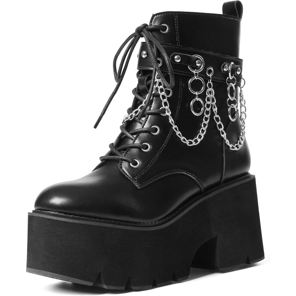 Don’t miss out on our limited-time offer: get a free {accessory} with your purchase of AMINUGAL Womens Fashionable Platform Boots Round Toe Lace Up Thick High Heel Chain Buckle Rivets Side Zipper Booties(Black).