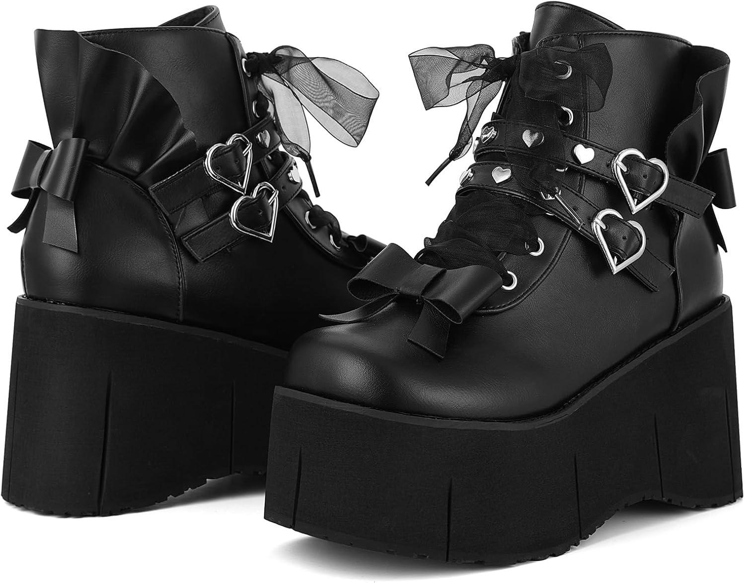 Be the first to review “AMINUGAL Womens Platform Boots Wedge Heel Heart Eyeletted Decoration Adjustable Strap Lace Up Punk Halloween Outdoor Combat Motorcycle Boot(Black)” Cancel reply