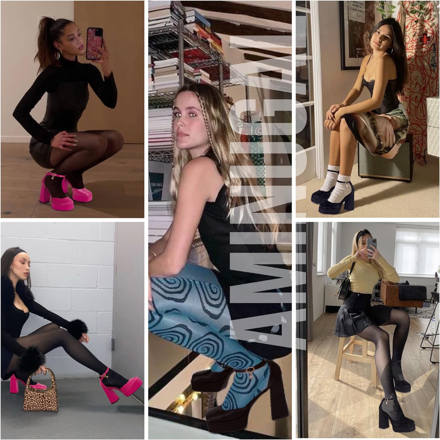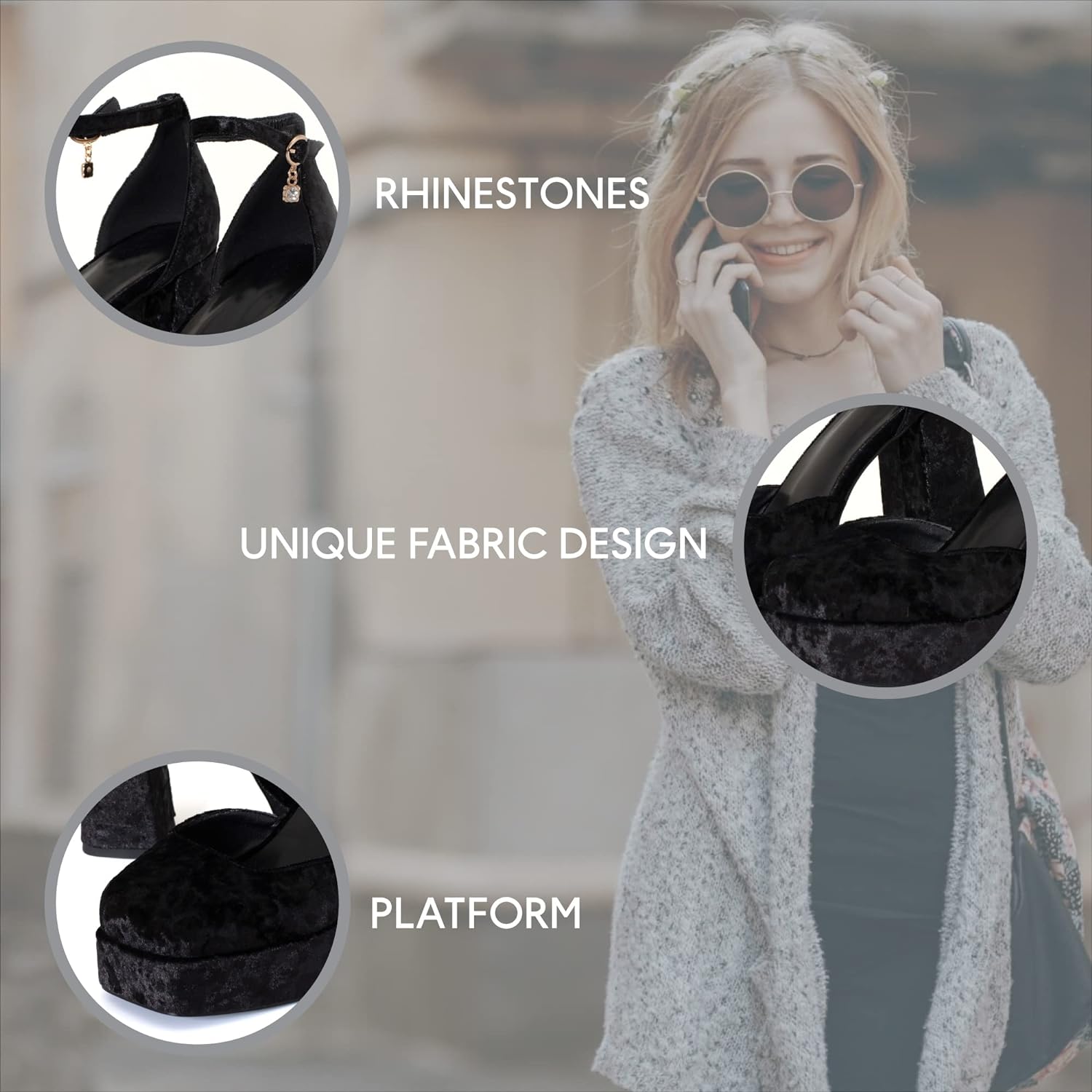 {Design}Pumps with platform, high heel, non-slip, rubber bottom, stain platform heels style, ankle strap for conveniently adjust the size of the shoes.