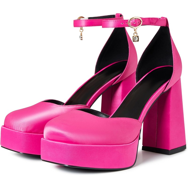 {Design}Pumps with platform, high heel, non-slip, rubber bottom, stain platform heels style, ankle strap for conveniently adjust the size of the shoes.
